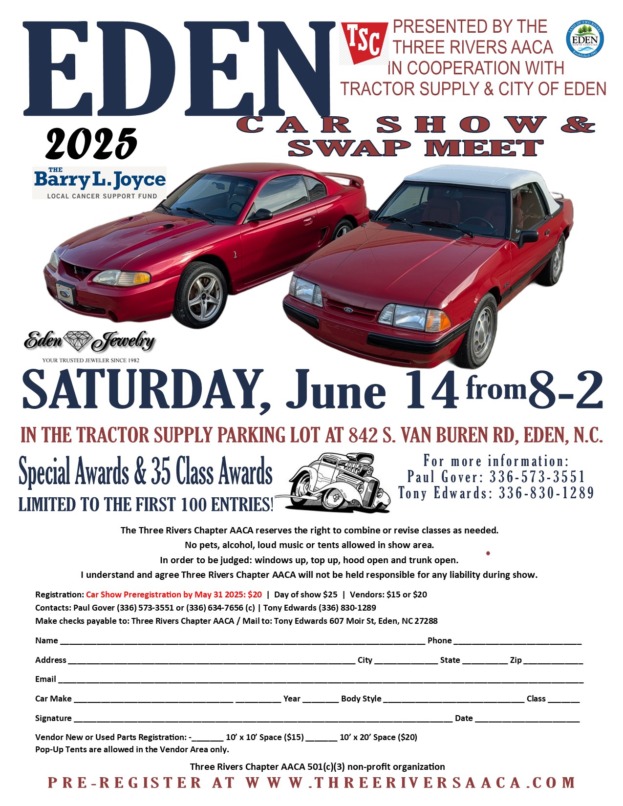 Three Rivers AACA 2025 Eden Car Show & Swap Meet